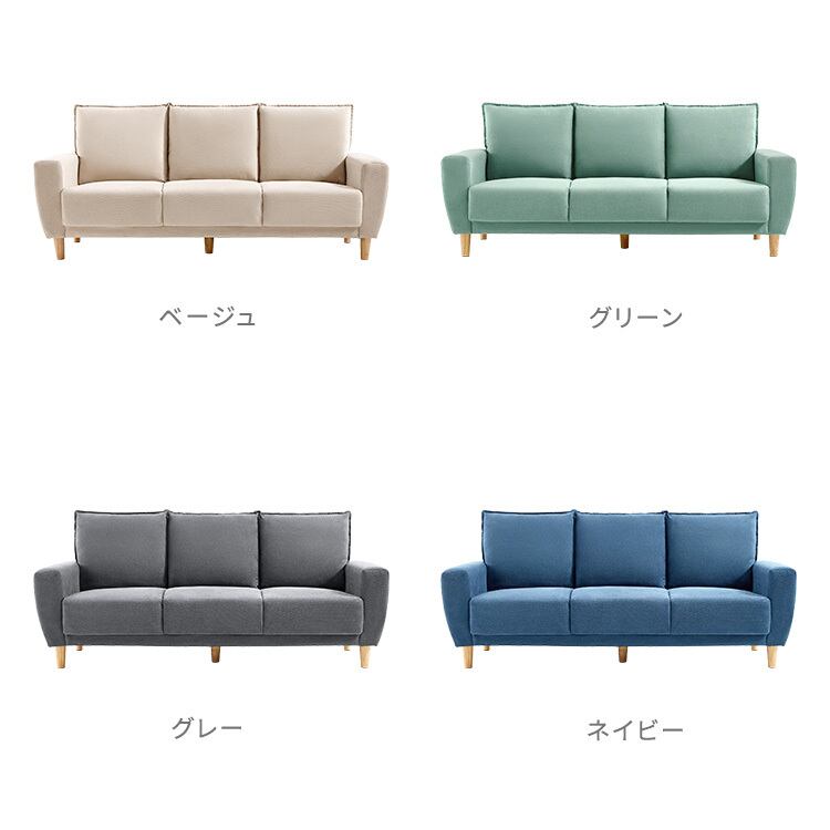 この商品は、広い座面と快適な肘掛けが特徴の3人掛けソファです。