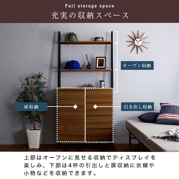 大容量の収納を確保しつつ、お気に入りのアイテムをディスプレイできます。