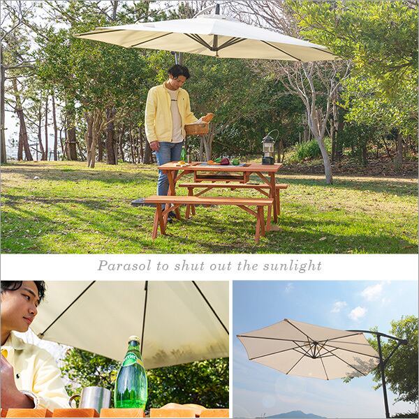 直径3mの傘でしっかりと日陰を作る事ができるパラソル!